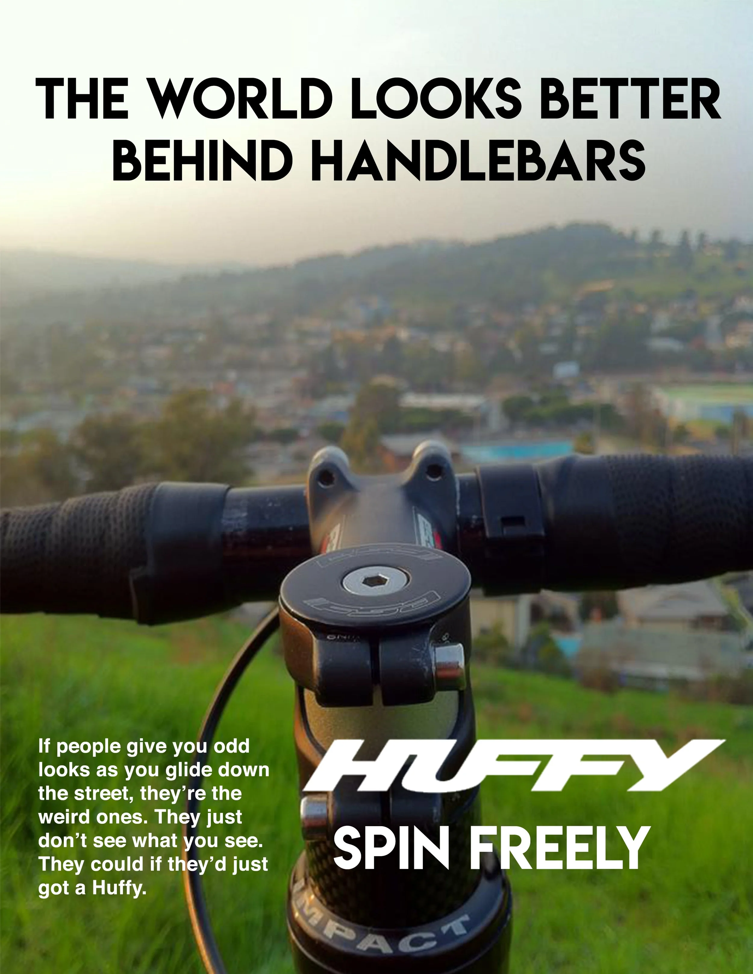 This assignment was in the same vein as the last, except literally there are no training wheels this time. The brand is Huffy Bikes, and my goal was to entice thrill seeking outdoor types to own a Huffy. I tried to accomplish this by branding Huffy as a way to experience the world through a different lens that also comes with the added bonus of wind in your hair.