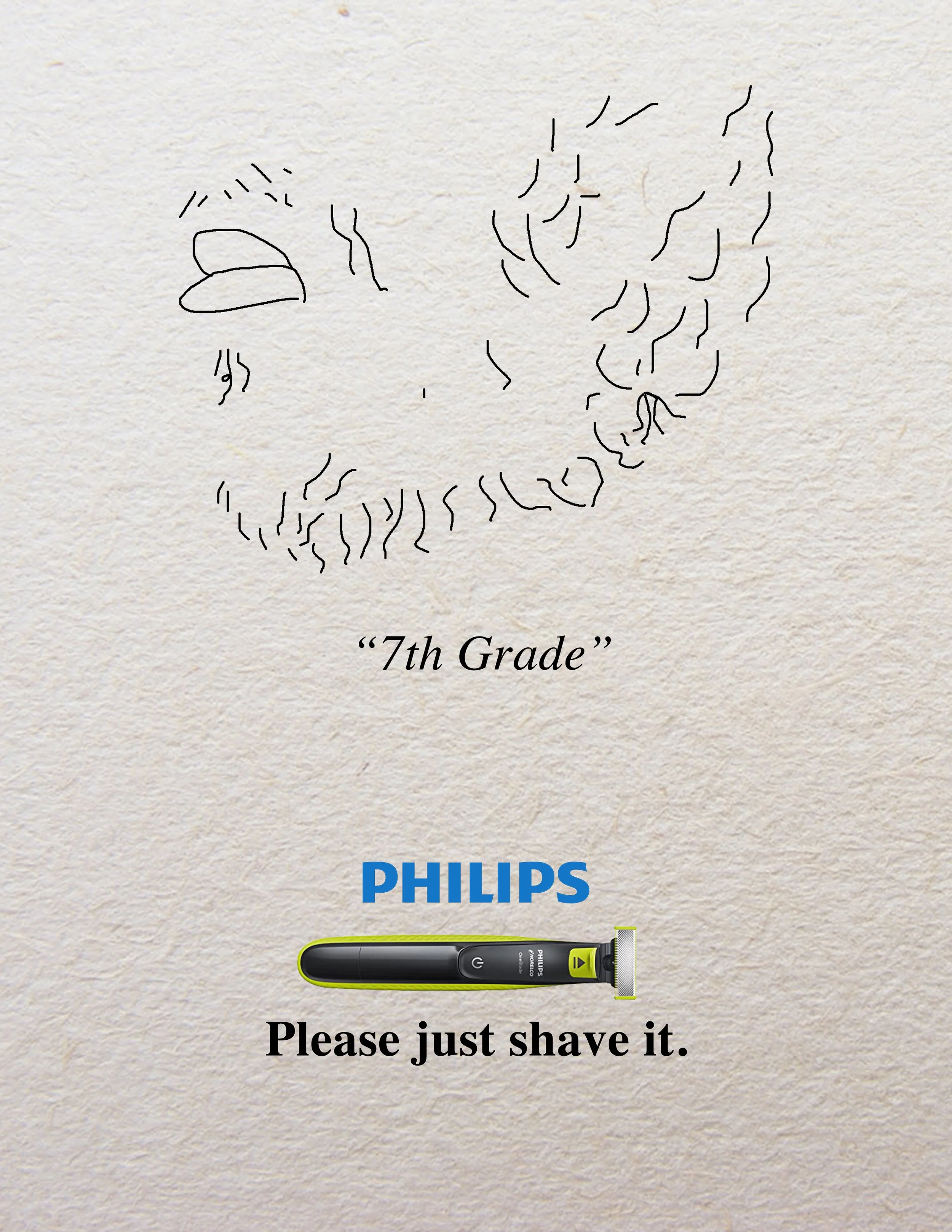 The goal of this project was to ride with no training wheels. We were j ust given a brand and no other goal than to create a campaign that will effectively reach your desired target. I was given Philips Razors, so I decided to take a look back through my college years at all the “just not there yet” facial hair styles I had witnessed or even attempted myself. I decided to take a self deprecating approach of getting 20 year old dudes to press reset, and give themselves a new lease on the world with a clean shave.